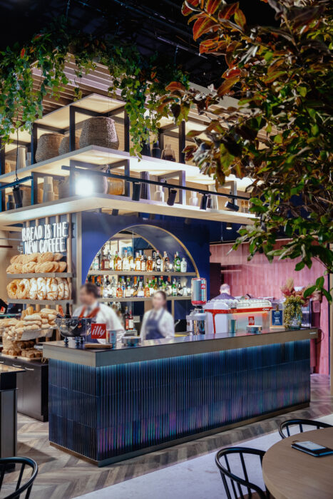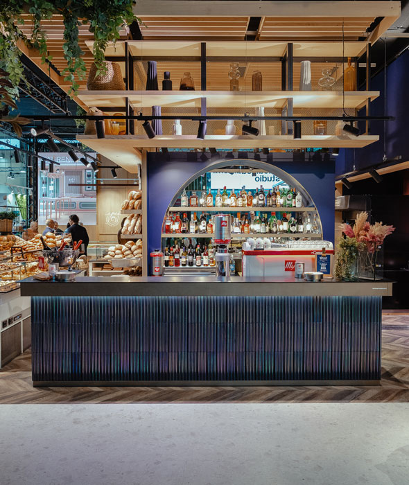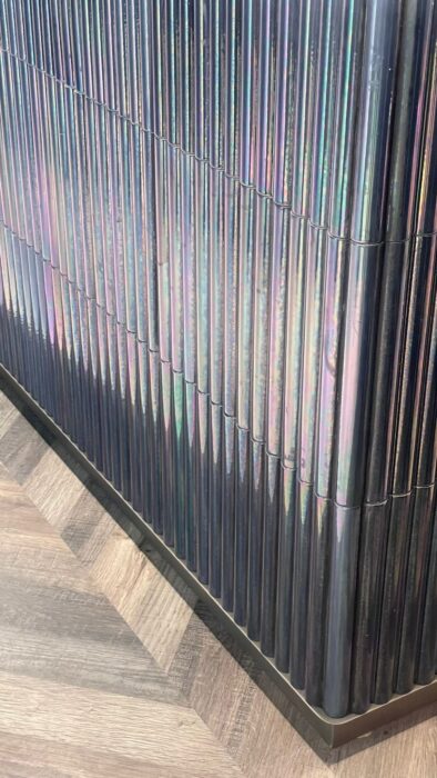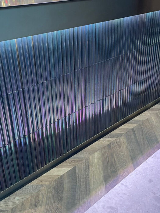 Our Rena intenso craquelé glaze, a refined shade of deep red with a subtle touch of dark pink, was chosen to coat the three-dimensional terracotta tiles used in the creation of the bar counter at Papiersaal, located in the historic Sihl Paper Mill at Kalanderplatz, Zurich. Housed in a building of great historical charm, Papiersaal stands out for its design that harmoniously combines contemporary aesthetics, industrial architecture, and functional elegance. The focal point of the venue is the 30-meter-long bar counter, designed by renowned architect Andrin Schweizer, celebrated for his exceptional sensitivity in working with historic architecture. For the cladding, Schweizer selected our three-dimensional tiles in varying shapes and sizes – from the Lapis and Via Appia collections – creating a sculptural surface of striking visual impact and expressive depth.