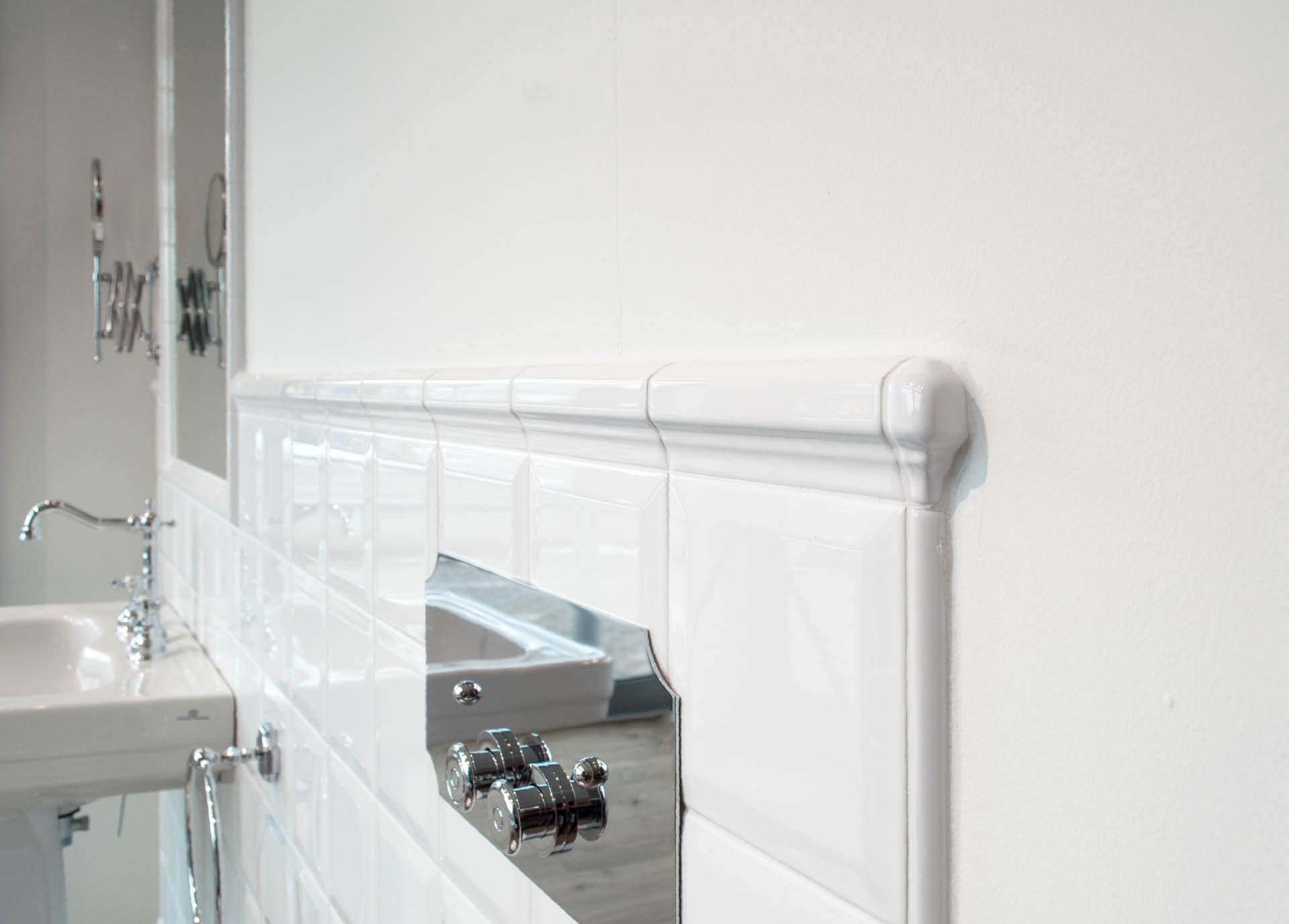 Secondo un vecchio adagio il classico non tramonta mai, nulla di più vero! In fatto di interior design, sopratutto per l’ambiente bagno, uno degli elementi più classici in assoluto è il colore bianco. Neutro, luminoso ed elegante come nessun altro, da tempo è la scelta preferita di moltissimi addetti ai lavori e non, sia per rivestire le pareti che per arredare gli l’ambienti. É il caso di Sara, la responsabile di una sala mostra nel cuore della Romagna che, per realizzare il box vetrina, ha scelto le pistrelle della nostra collezione Trapunta Diamante colore Bianco. Il suo concept era quello di creare un’ambientazione classica, elegante e intramontabile nel tempo perchè… “La moda passa, ma lo stile…resta”!
